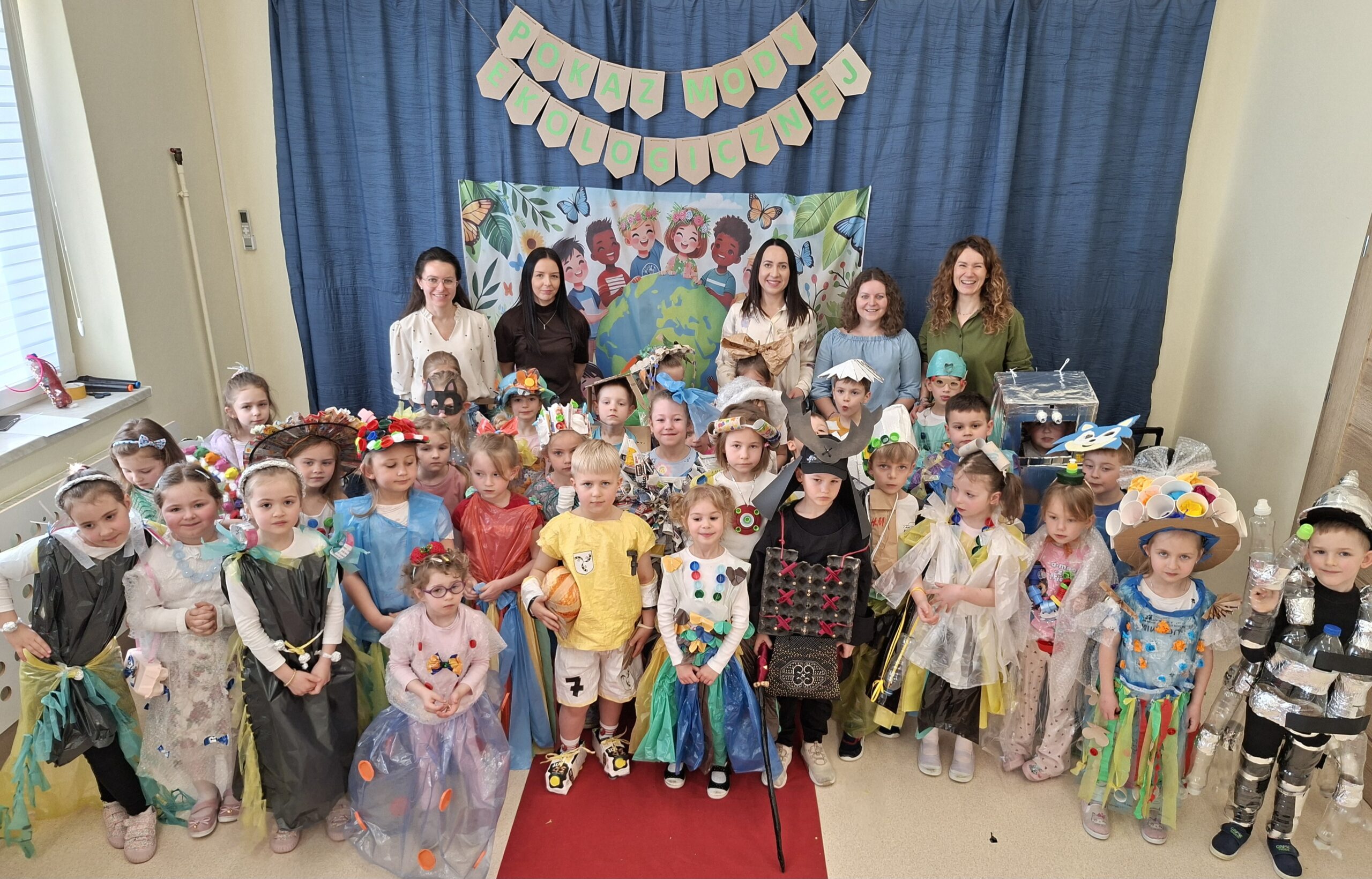 Dzisiejszy dzień w naszym przedszkolu upłynął w wyjątkowo kreatywnej i radosnej atmosferze. W ramach obchodów Światowego Dnia Ziemi odbył się „Pokaz mody ekologicznej”, w którym udział wzięło naprawdę bardzo dużo uczestników. Zaprezentowane kreacje przeszły nasze najśmielsze oczekiwania. Dzieci z ogromnym zaangażowaniem prezentowały swoje stroje, pokazując jednocześnie, jak w twórczy sposób można wykorzystać materiały które na co dzień trafiają do śmieci.