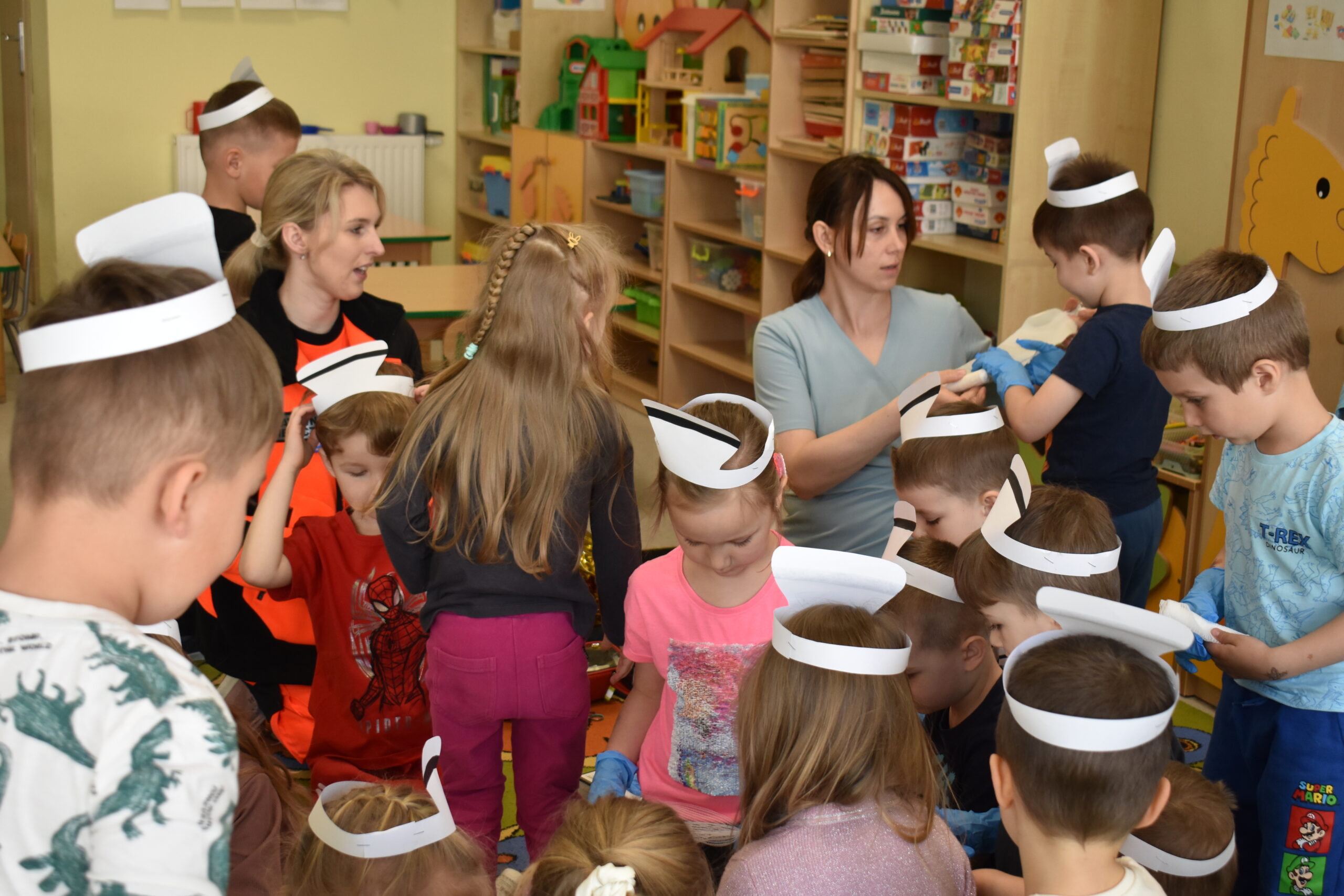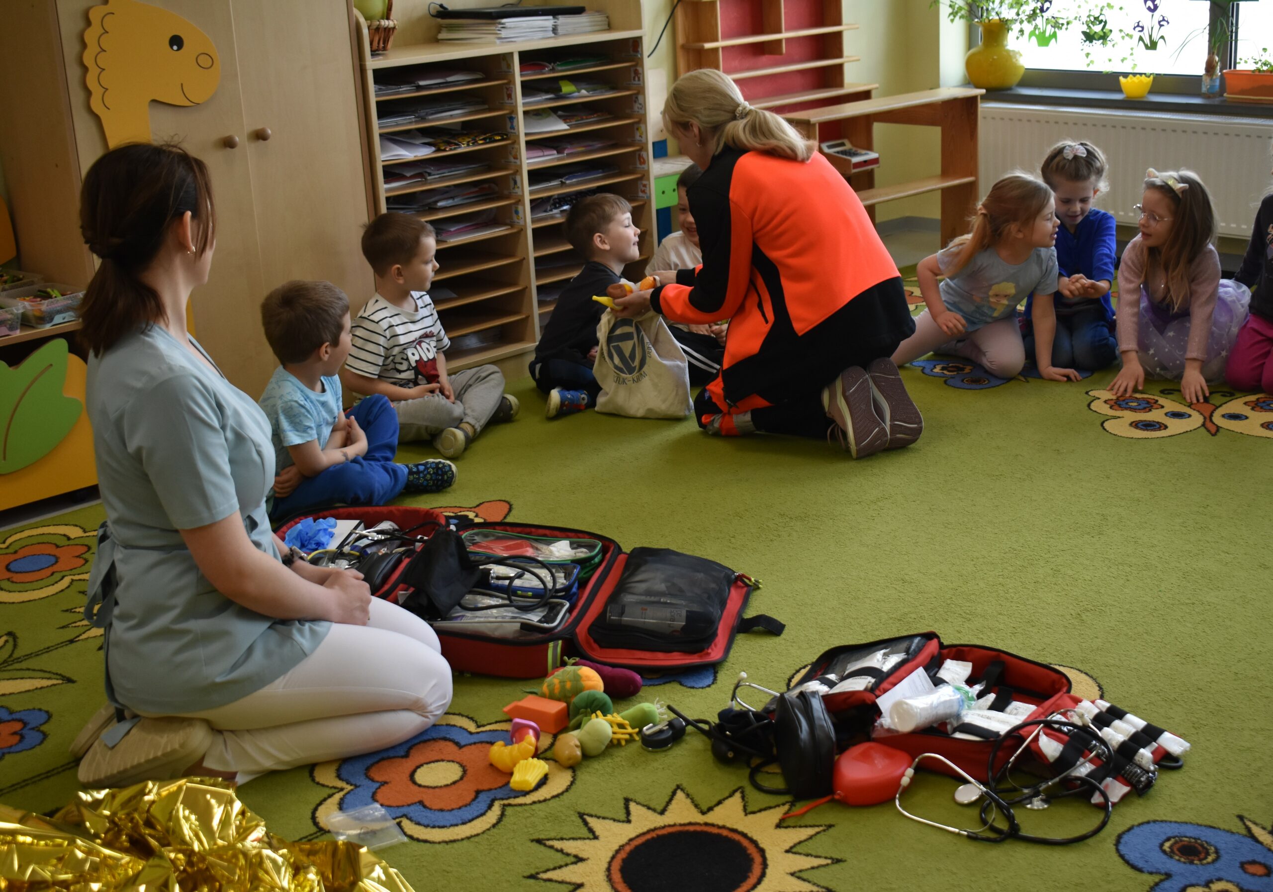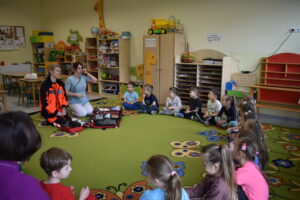 Z okazji Dnia Zdrowia, 21.04.2026 r. grupę Tygryski odwiedziły mamy naszych przedszkolaków, Pani Adriana i P. Kasia pracujące w służbie zdrowia. Panie zaprezentowały dzieciom przedmioty niezbędne do wykonywania swoich zawodów i wyjaśniły do czego służą. Opowiadały, czym się zajmują w swojej pracy i co należy zrobić, aby być zdrowym, przypomniały jak dokładnie myć ręce i dlaczego jest to tak ważne.