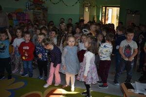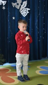 Dnia 20.01.2026 r. w naszym przedszkolu odbył się Konkurs Kolęd i Pastorałek, który zgromadził 16 najmłodszych przedszkolaków. Wydarzenie to miało na celu kultywowanie pięknych tradycji bożonarodzeniowych, rozwijanie wrażliwości muzycznej dzieci oraz zachęcanie ich do wspólnego kolędowania. Mali artyści z wielkim zaangażowaniem i odwagą prezentowali swoje umiejętności wokalne, wprowadzając wszystkich obecnych w radosny, świąteczny nastrój. Każdy występ był wyjątkowy i nagradzany gromkimi brawami. Serdecznie dziękujemy wszystkim uczestnikom za piękne prezentacje, a Rodzicom za wsparcie oraz przygotowanie dzieci do występów. Konkurs dostarczył wielu wzruszeń i radości, a wspólnie spędzony czas na długo pozostanie w naszej pamięci.