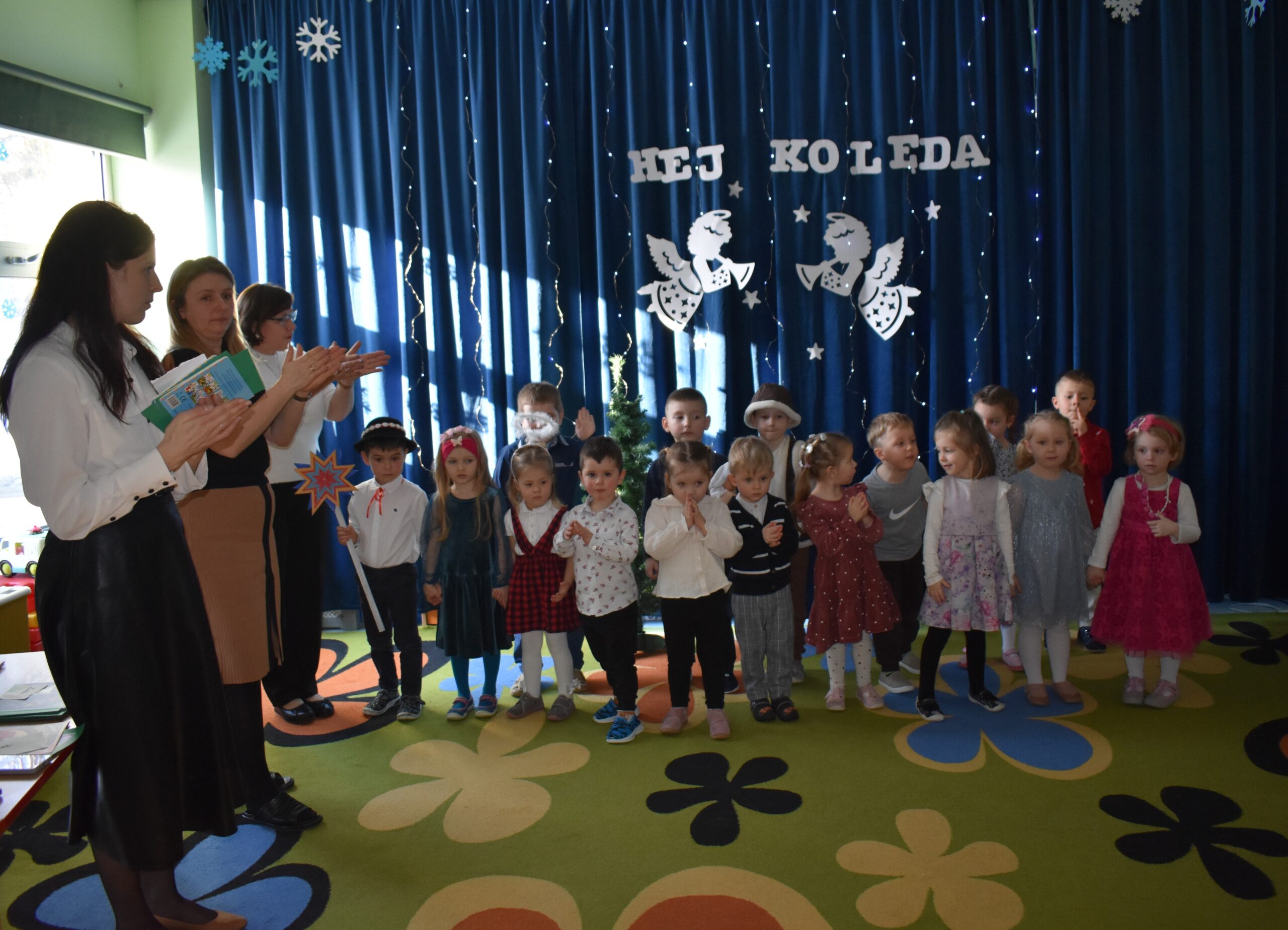 Dnia 20.01.2026 r. w naszym przedszkolu odbył się Konkurs Kolęd i Pastorałek, który zgromadził 16 najmłodszych przedszkolaków. Wydarzenie to miało na celu kultywowanie pięknych tradycji bożonarodzeniowych, rozwijanie wrażliwości muzycznej dzieci oraz zachęcanie ich do wspólnego kolędowania. Mali artyści z wielkim zaangażowaniem i odwagą prezentowali swoje umiejętności wokalne, wprowadzając wszystkich obecnych w radosny, świąteczny nastrój. Każdy występ był wyjątkowy i nagradzany gromkimi brawami. Serdecznie dziękujemy wszystkim uczestnikom za piękne prezentacje, a Rodzicom za wsparcie oraz przygotowanie dzieci do występów. Konkurs dostarczył wielu wzruszeń i radości, a wspólnie spędzony czas na długo pozostanie w naszej pamięci.