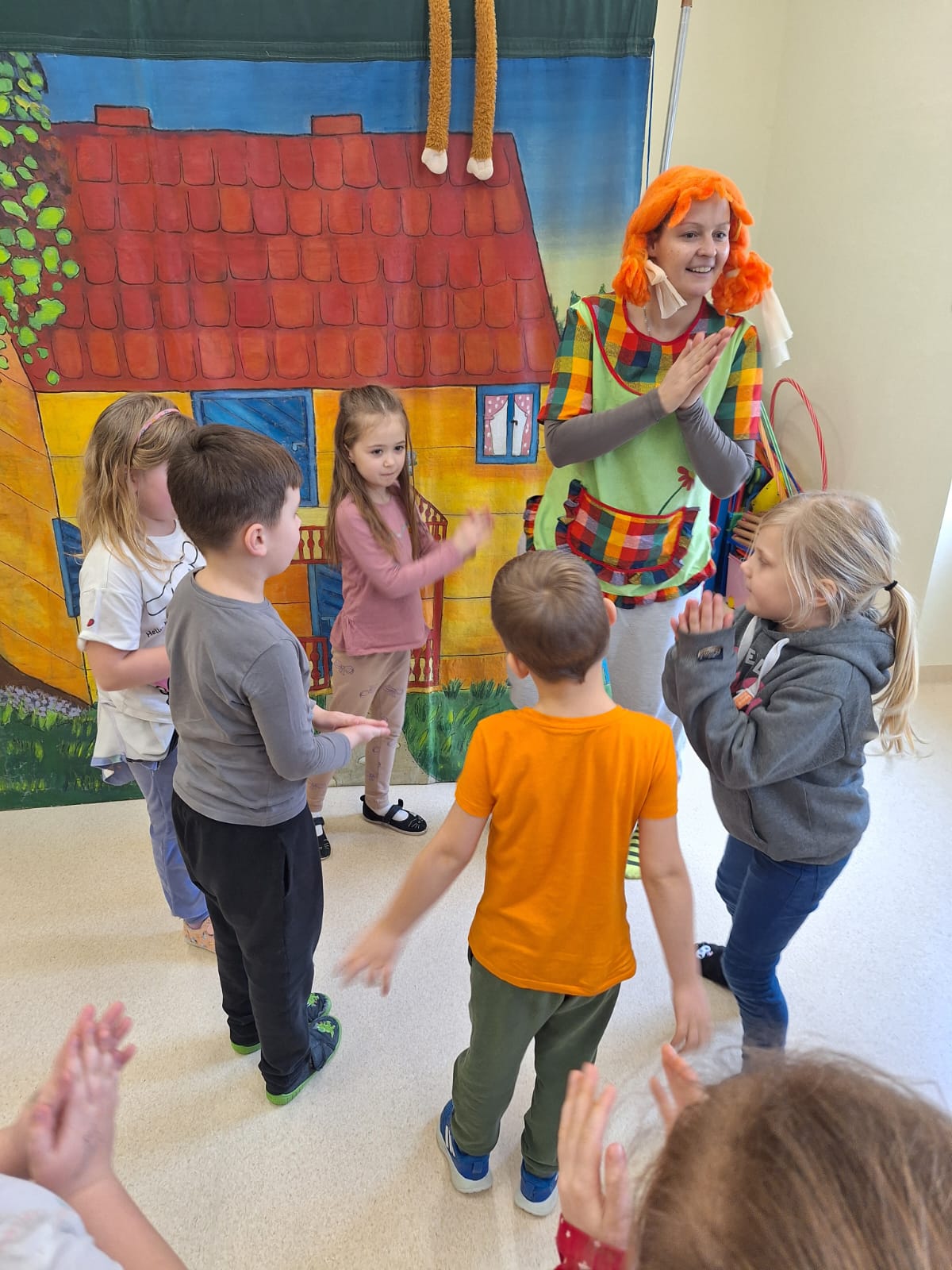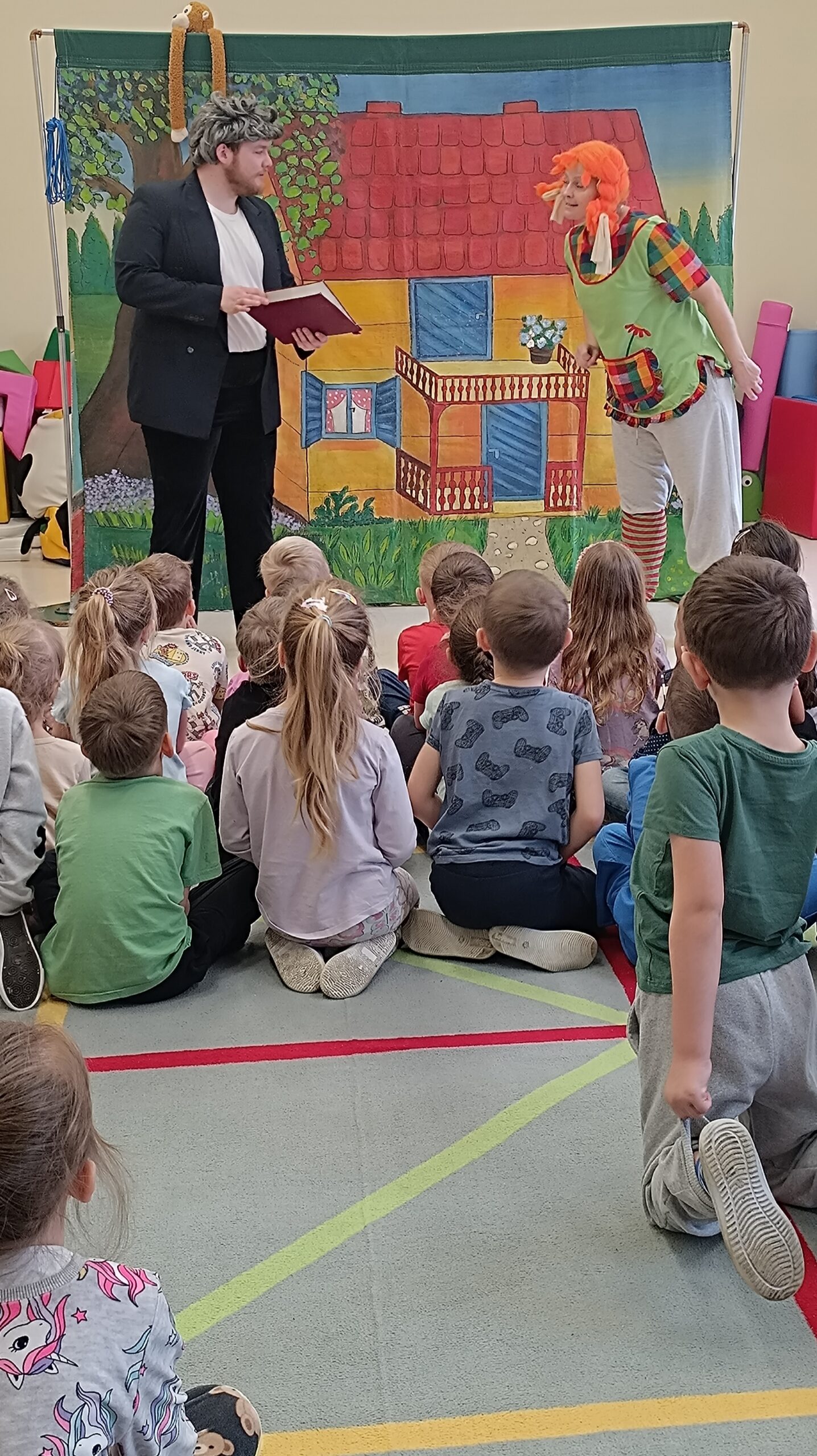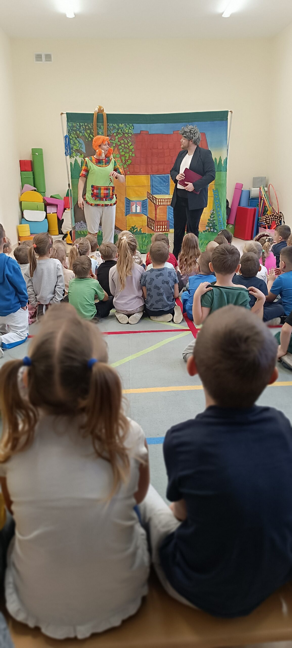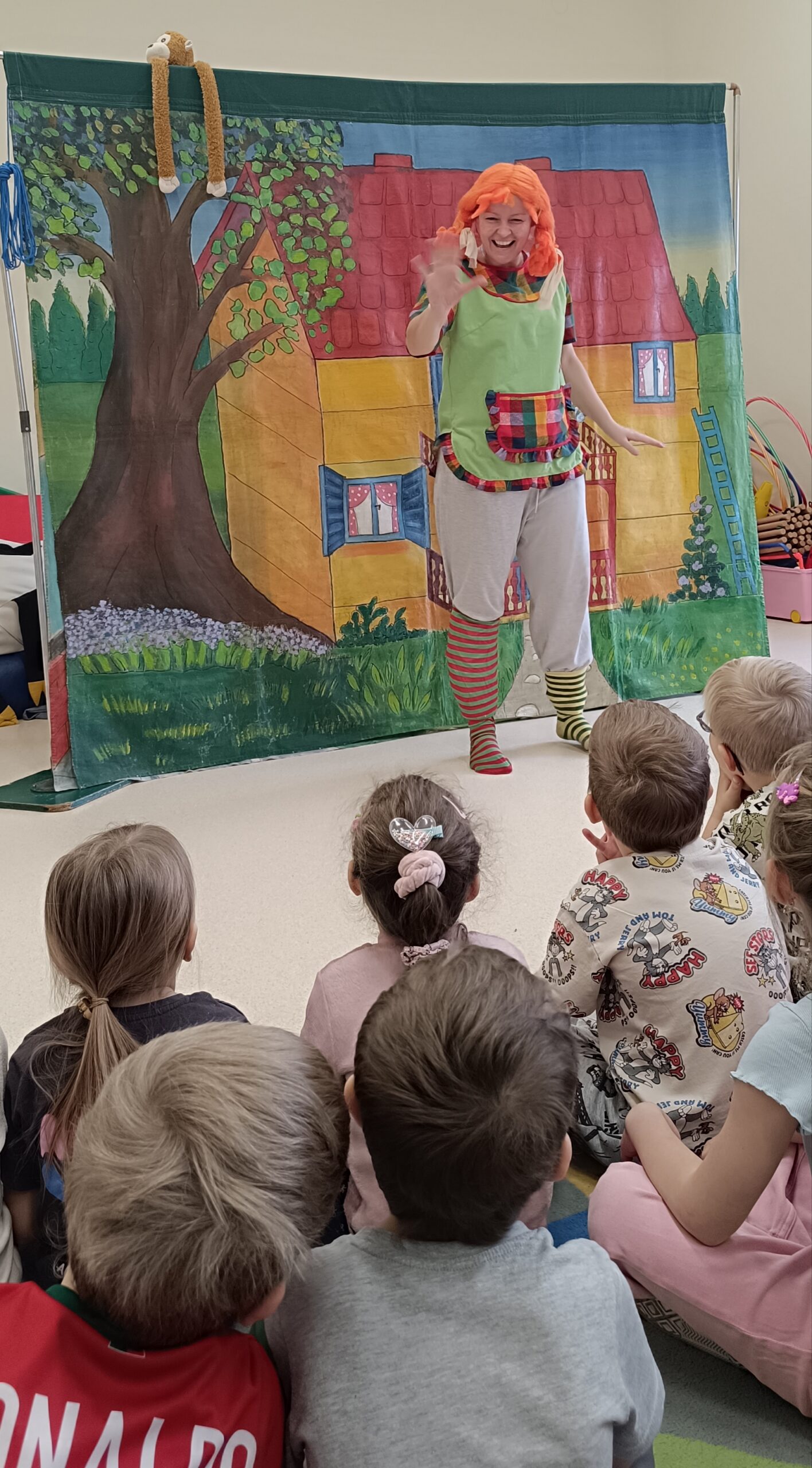 Przedstawienie aktorów z teatru Krak-Art pt.”Pipi Skarpetka” u starszych przedszkolaków