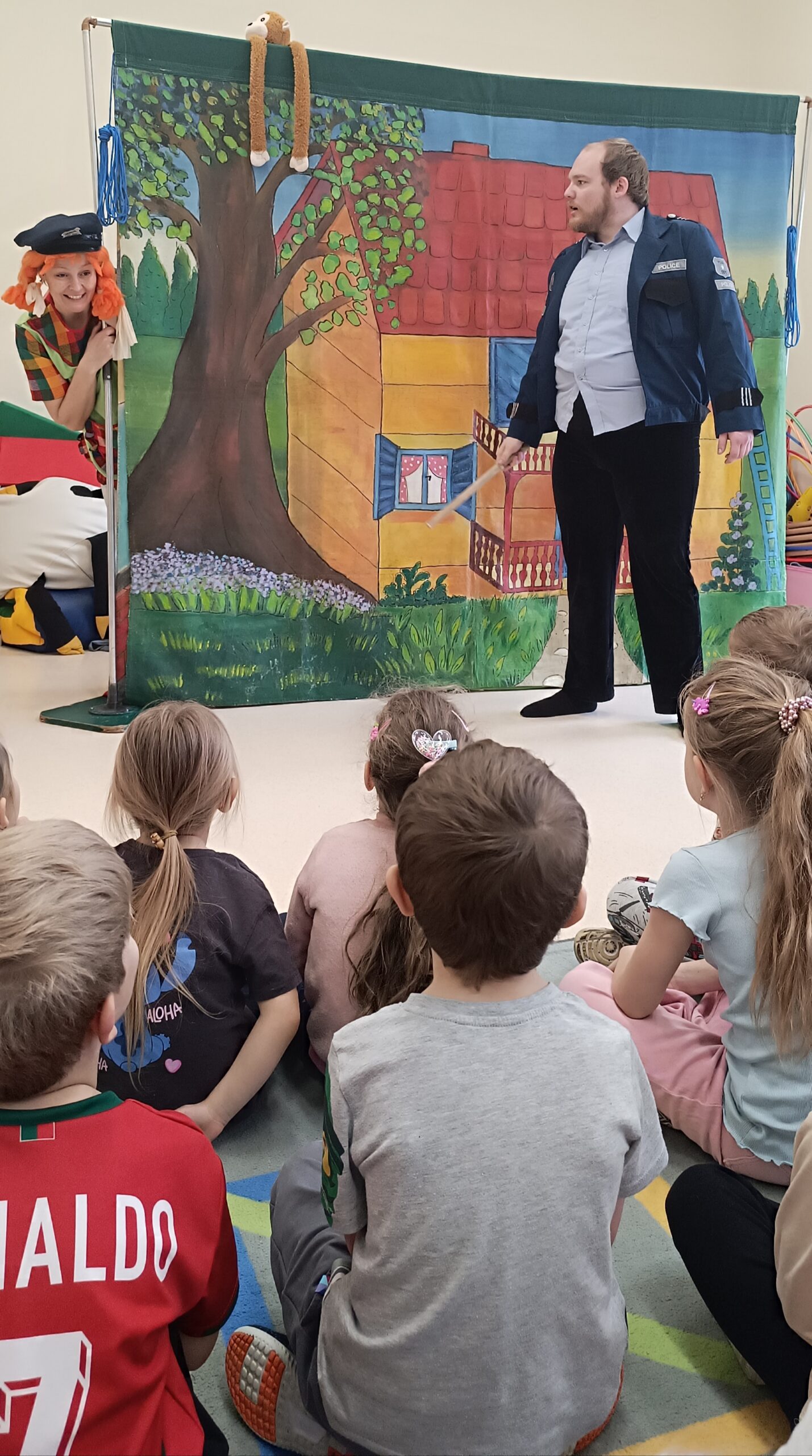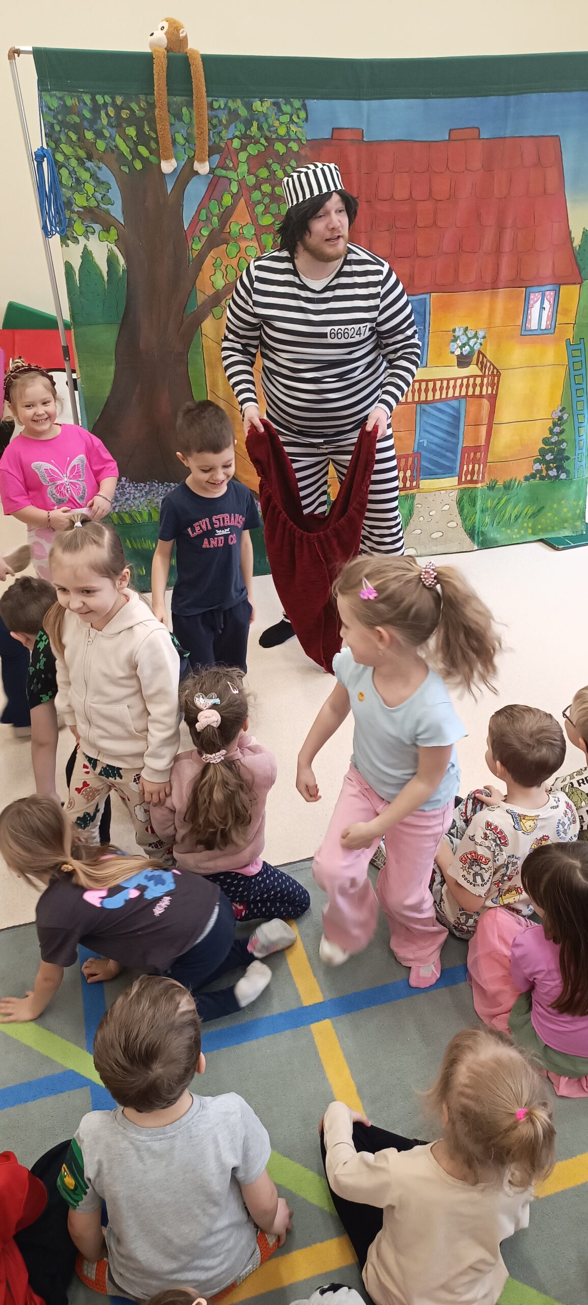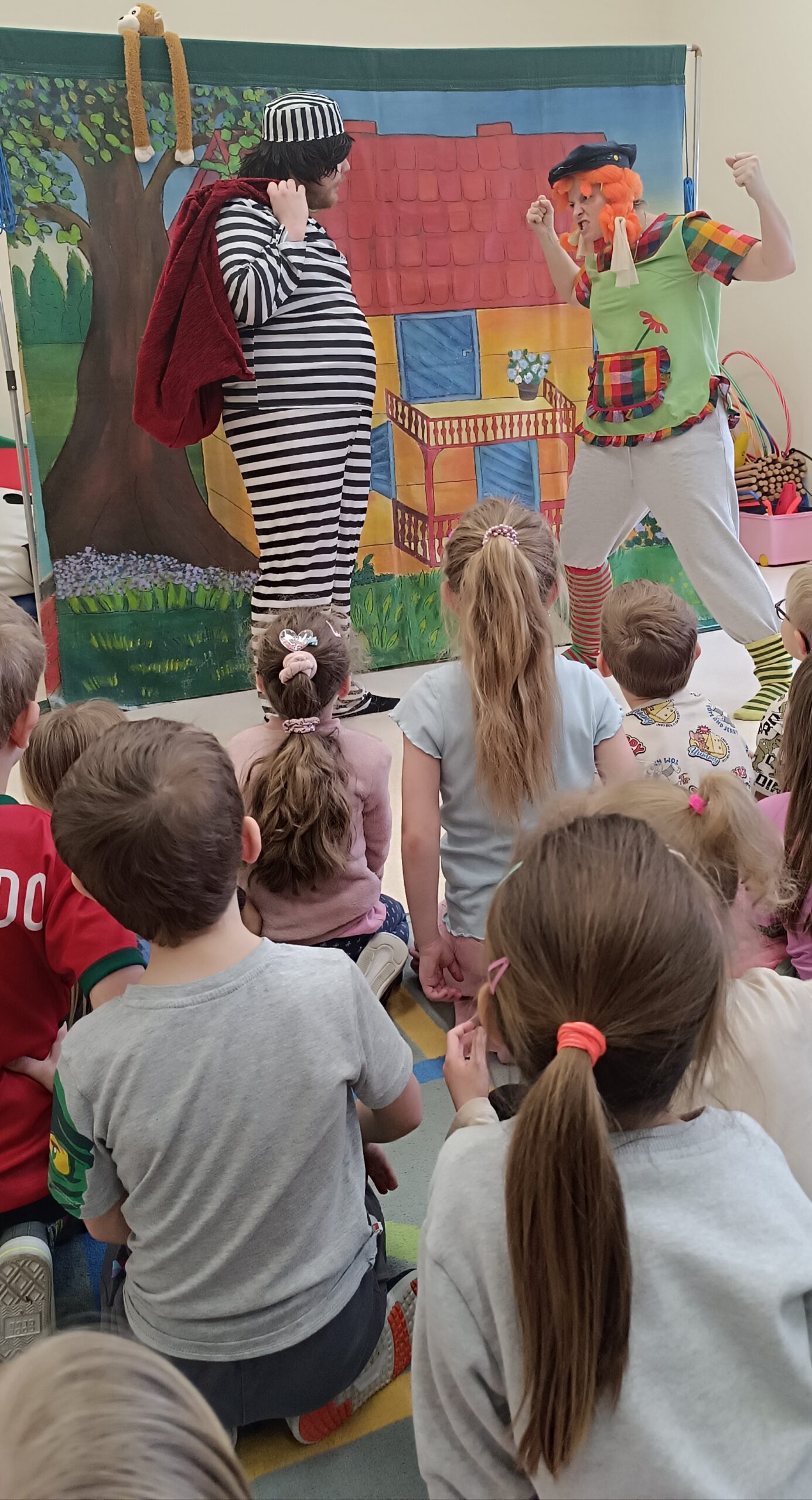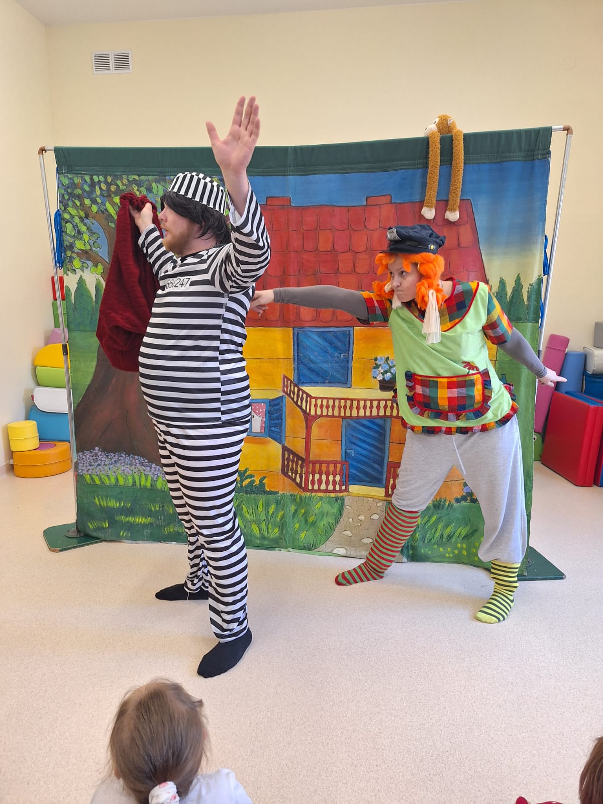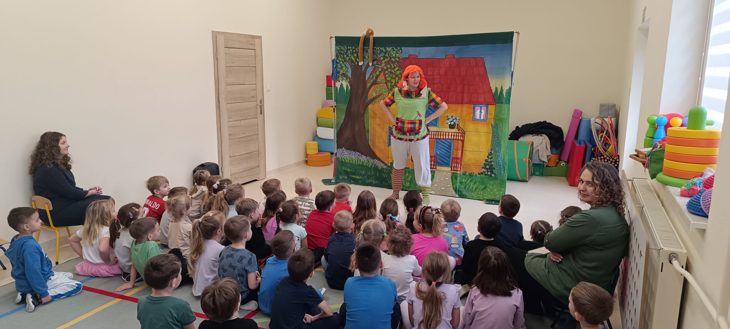 Przedstawienie aktorów z teatru Krak-Art pt.”Pipi Skarpetka” u starszych przedszkolaków