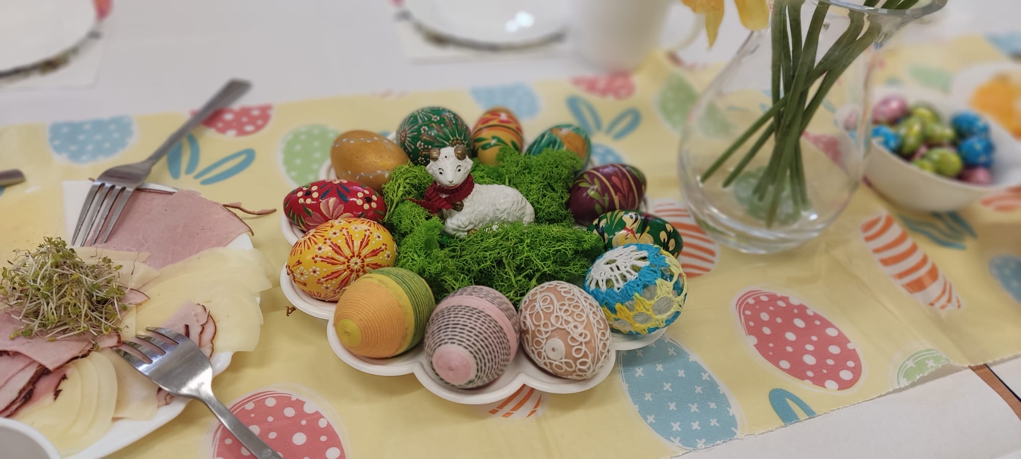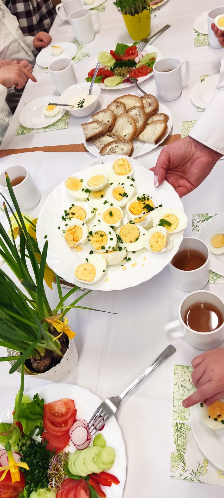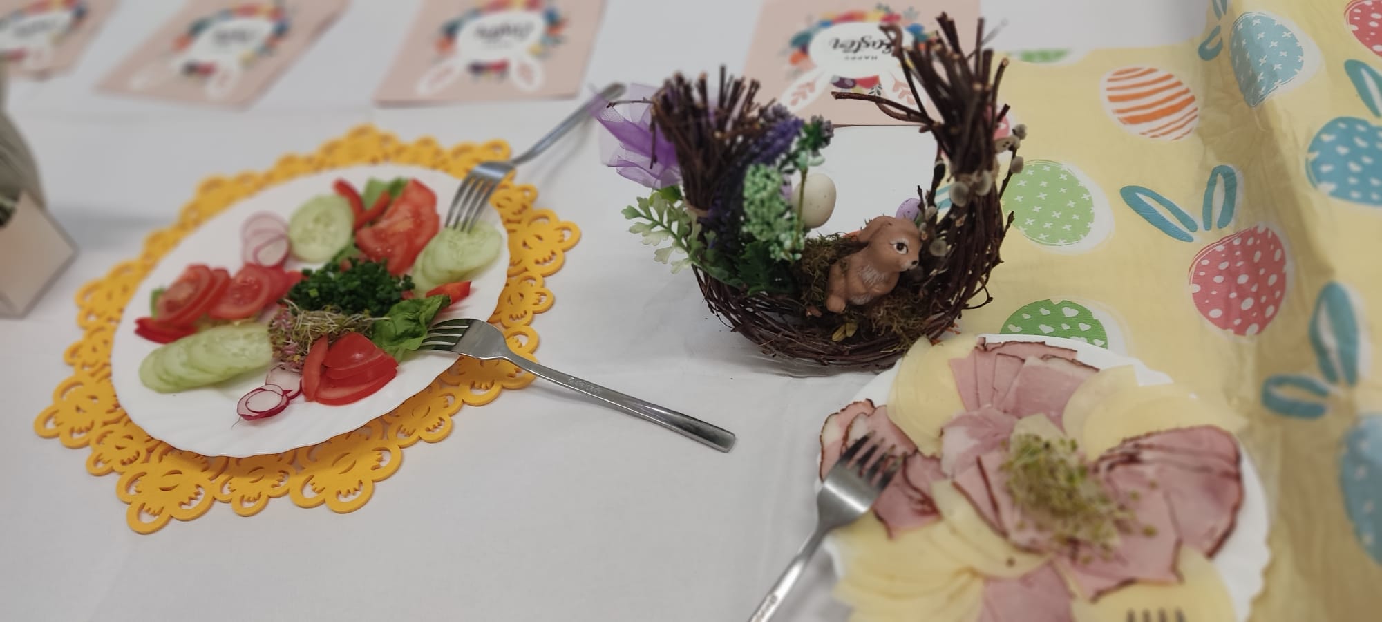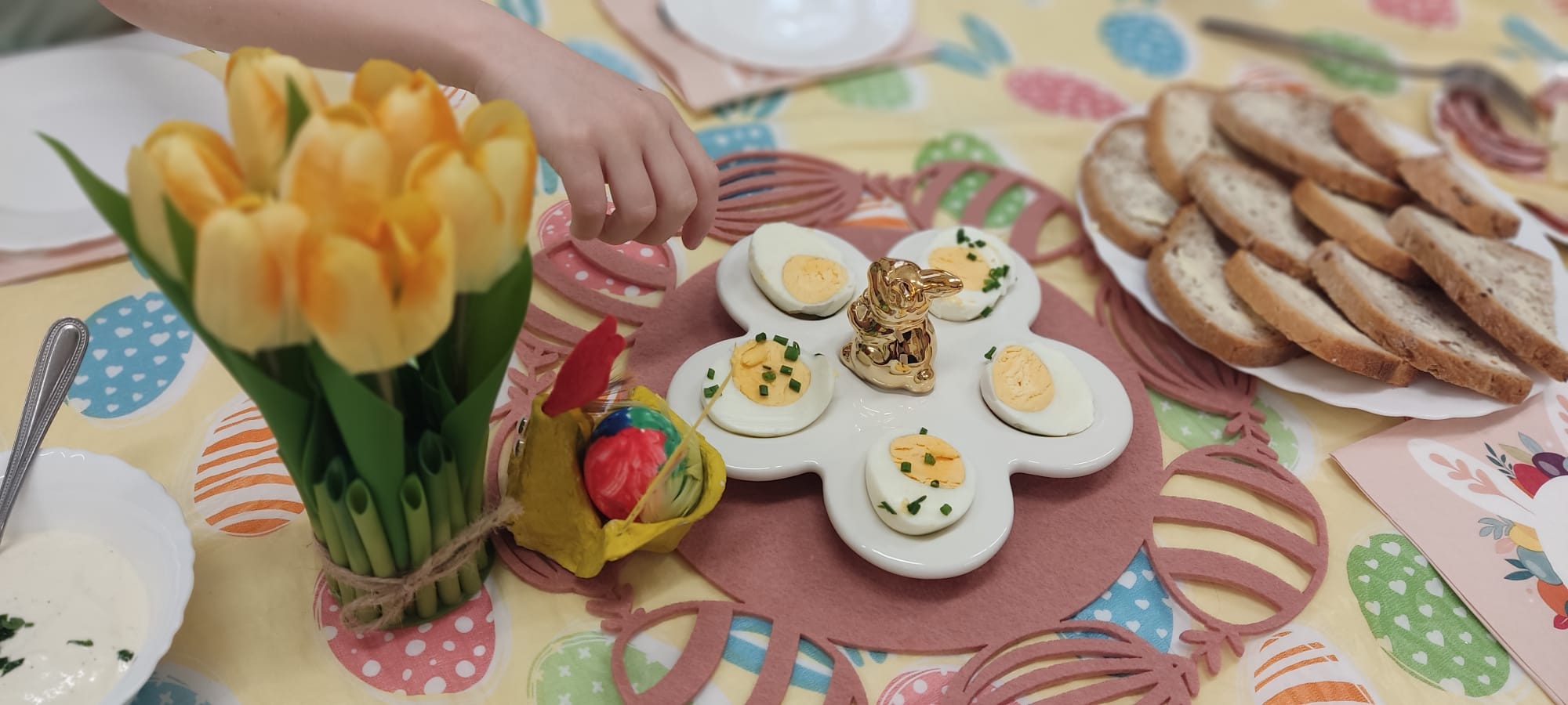 W naszym przedszkolu odbyło się radosne i wyjątkowe Śniadanie Wielkanocne. Dzieci wraz z nauczycielkami wspólnie zasiadły do pięknie udekorowanych stołów, na których nie zabrakło tradycyjnych potraw oraz świątecznych ozdób. Był to czas pełen uśmiechu, rozmów i budowania ciepłej, świątecznej atmosfery. Z tej okazji dzieci i nauczycielki składają wszystkim Rodzinom najserdeczniejsze życzenia: zdrowych, spokojnych i pełnych miłości Świąt Wielkanocnych, dużo uśmiechu, odpoczynku oraz chwil spędzonych razem. Niech ten czas będzie naprawdę wyjątkowy i pełen dobrej energii.