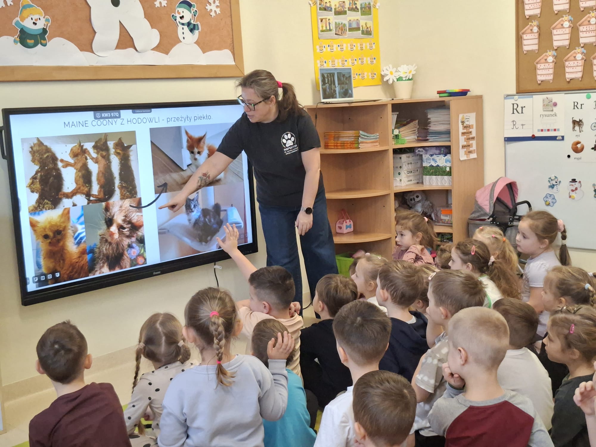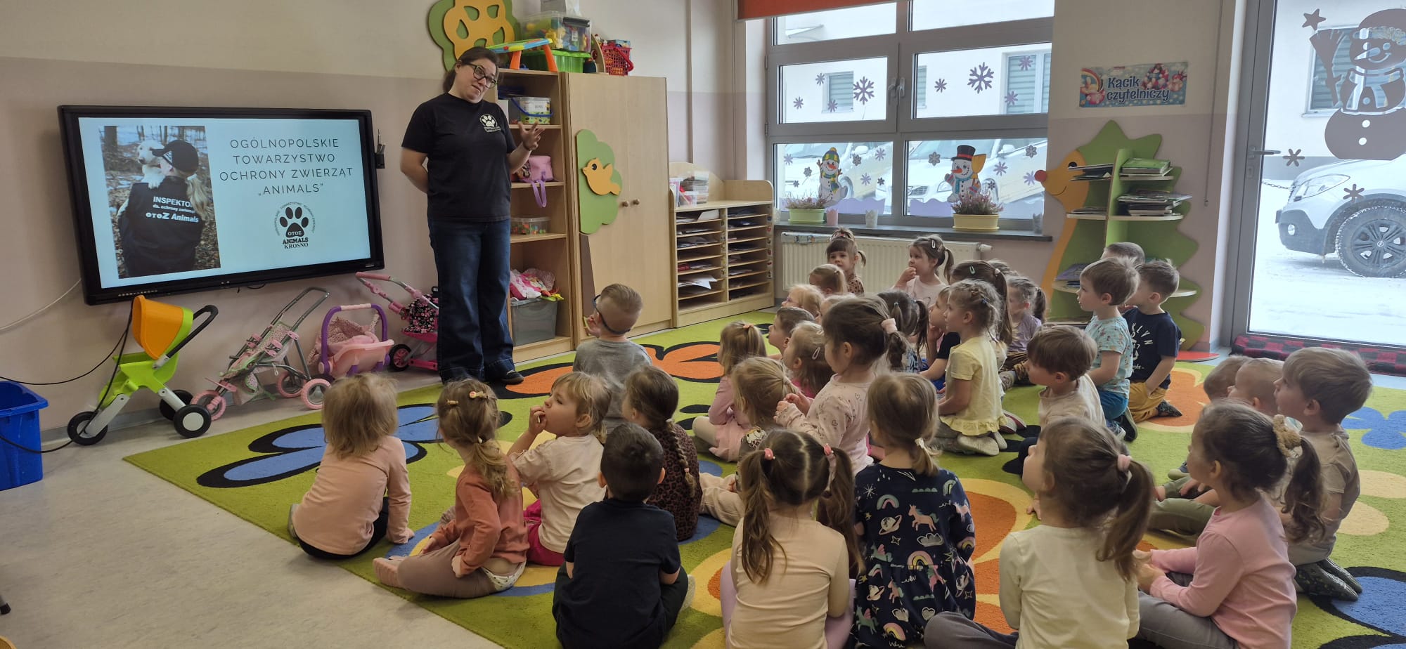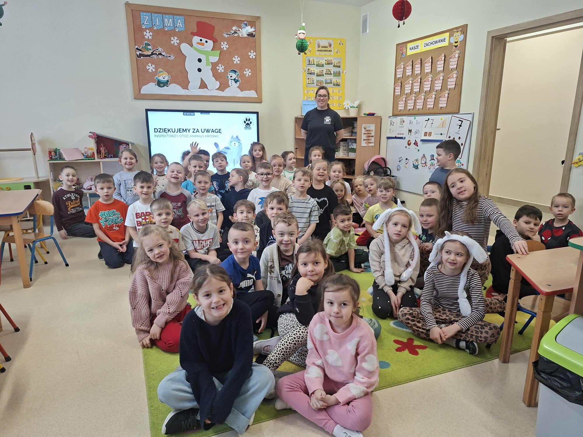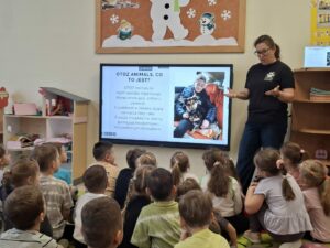 Podczas ferii zimowych nasze przedszkole odwiedziła nas Pani Kasia- wolontariuszka z organizacji OTOZ Animals Krosno. Spotkanie było dla dzieci cenną lekcją wrażliwości, odpowiedzialności i troski o zwierzęta. Przedszkolaki z dużym zainteresowaniem słuchały opowieści o pracy na rzecz bezdomnych i potrzebujących zwierząt oraz o tym, jak każdy z nas może im pomagać na co dzień. Serdecznie dziękujemy pani Kasi za ciekawą prelekcję oraz Rodzicom i ich Dzieciom za ogromne zaangażowanie i dobrowolne przynoszenie karmy dla zwierząt. Dzięki Państwa wsparciu udało się zebrać wiele darów, które trafią do podopiecznych organizacji. Państwa otwartość i chęć niesienia pomocy są pięknym przykładem dla najmłodszych.